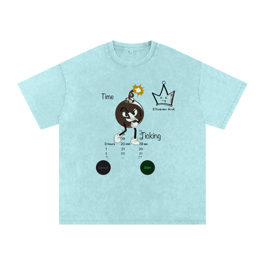 Time Ticking, Snow Washed Oversized Cotton T-Shirt