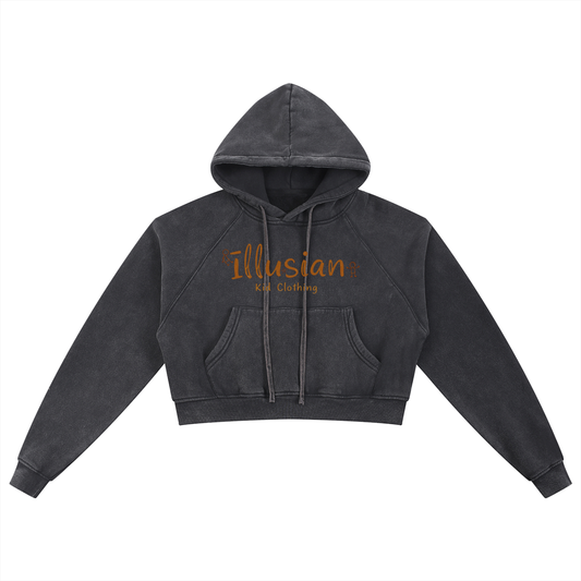 Where The Ill Kids Hang, Women's Snow Washed Cropped Hoodie
